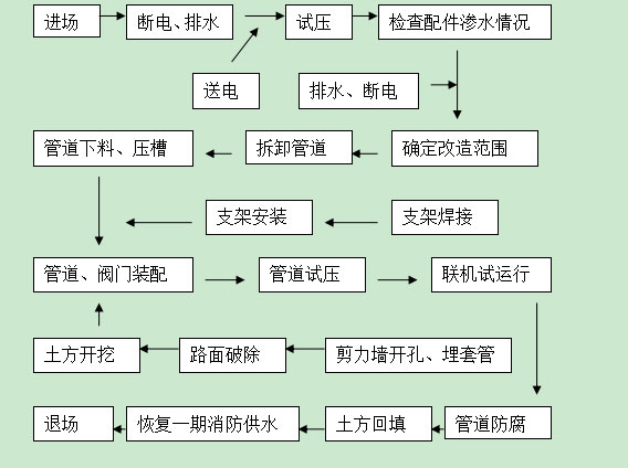 水泵房改造時(shí)將對(duì)一期工程的消火栓管網(wǎng)停水,屆時(shí)對(duì)一期建筑的防火安全產(chǎn)生一定的影響。故編制本施工方案,力求在短的時(shí)間內(nèi)更好地完成本工程的改造,降低一期建筑消防隱患。