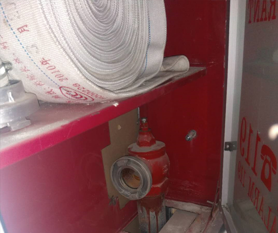 (3)模擬實(shí)際噴水試驗(yàn)。接好水槍,做好準(zhǔn)備工作,開(kāi)始試驗(yàn),檢查水的壓力及查看是否有漏水情況。