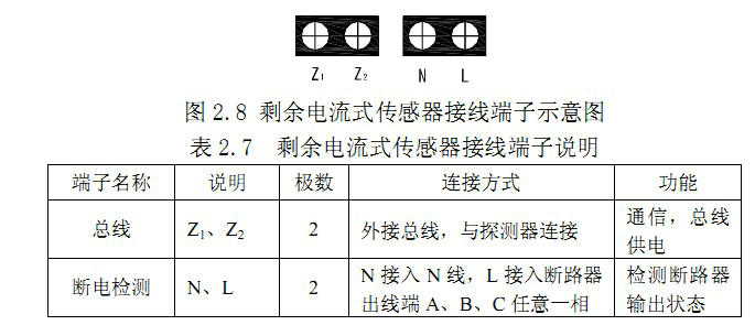 剩余電流式傳感器接線端子如圖 2.8所示,具體接線說(shuō)明如表 2.7。