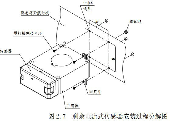 1、剩余電流式傳感器安裝過(guò)程分解圖如圖 2.7所示,M、N的值見表 2.6所示。