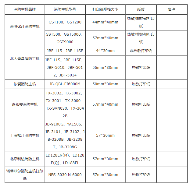 消防主機(jī)打印紙規(guī)格型號(hào)